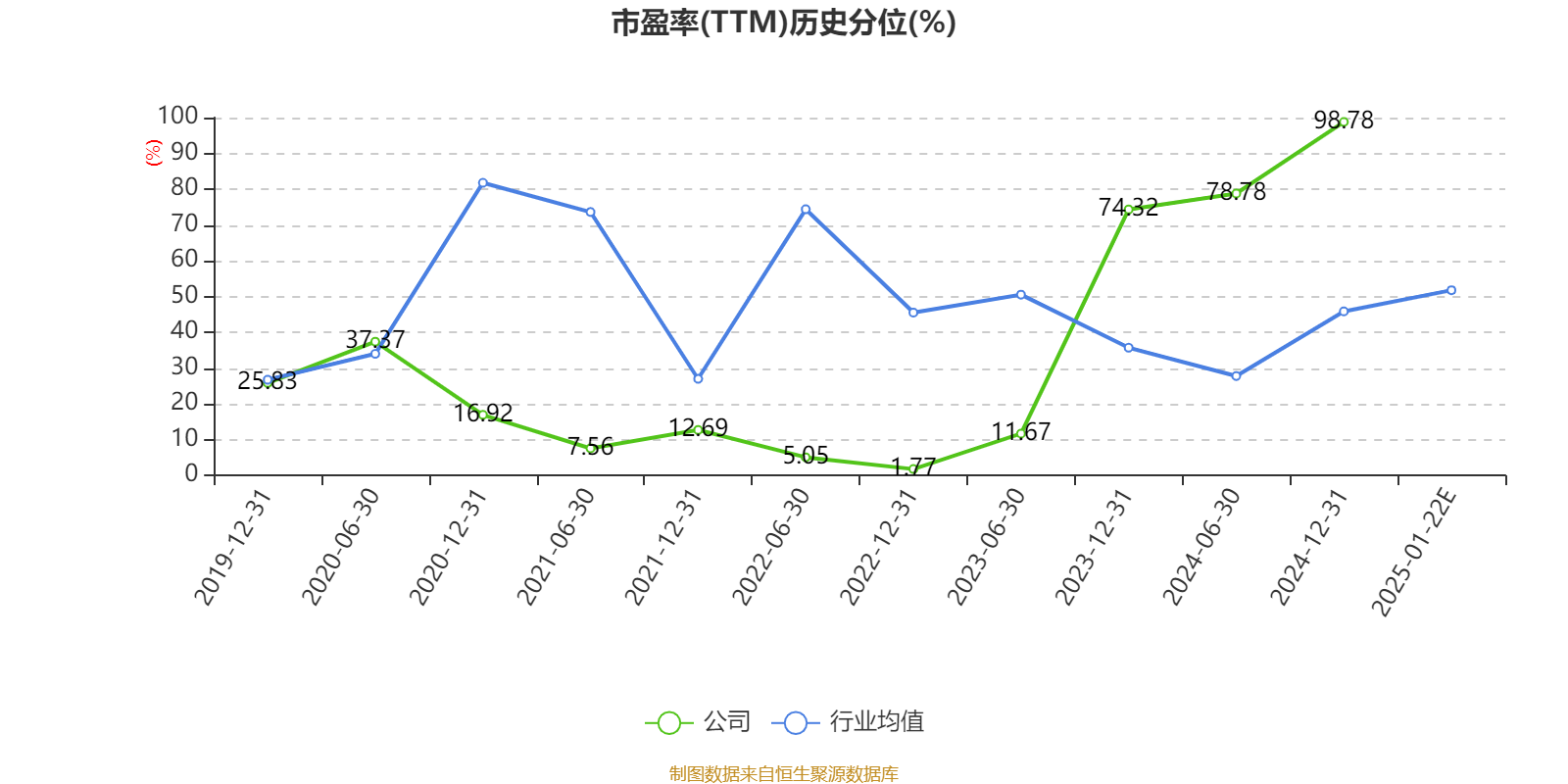 以本次披露业绩预告均值计算,公司近年市盈率(TTM)图如下所示: